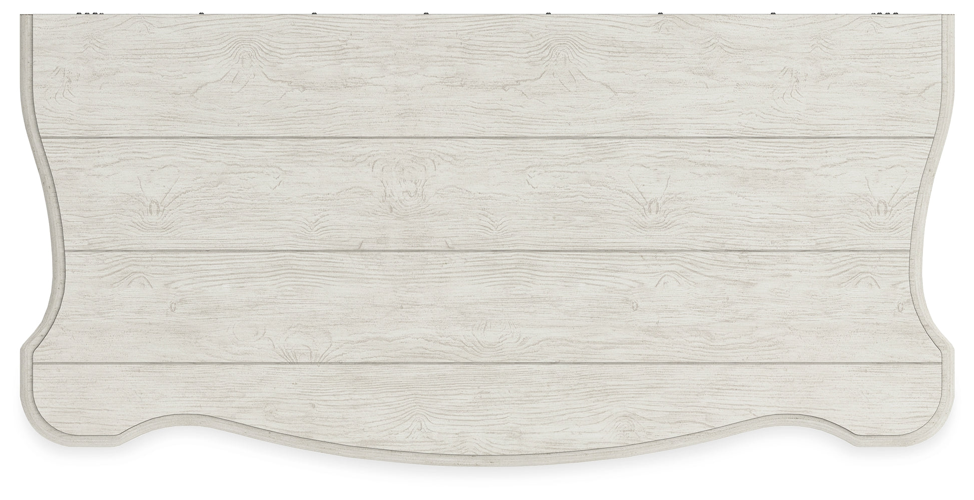Add a touch of romance to your home with this king upholstered bed. The antiqued white painted finish and serpentine-shaped silhouette details are the picture of easy elegance. Indulge your love of luxury with decadent button-tufted cushioning from head to toe.
