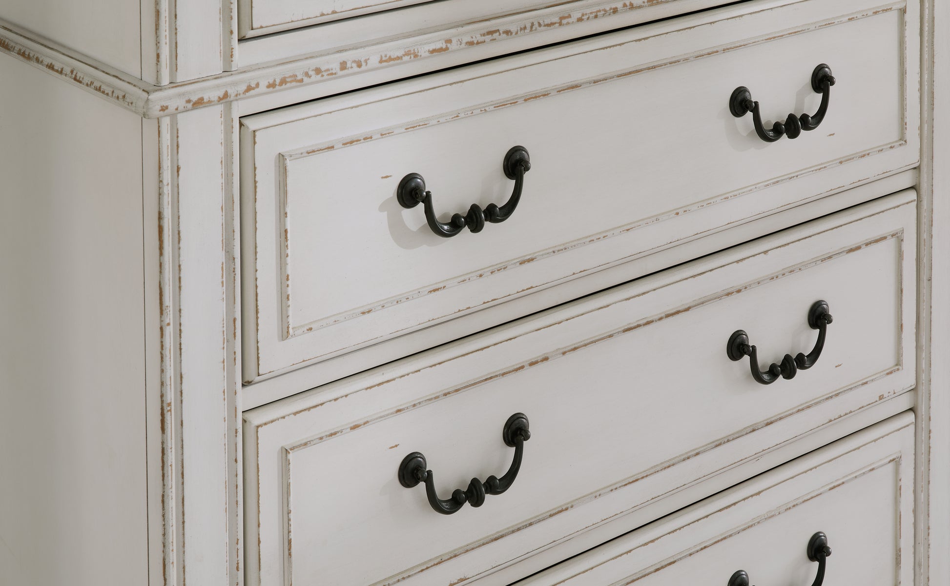 Traditional design. Casual appeal. You can have it all with this nightstand. A relaxed two-tone aesthetic merges with ornate profiled drawer fronts and pilasters to give the distinctive piece an allure all its own. Expansive drawers with quality dovetail construction and dark bronze-tone hardware reflect attention to detail from the inside out.
