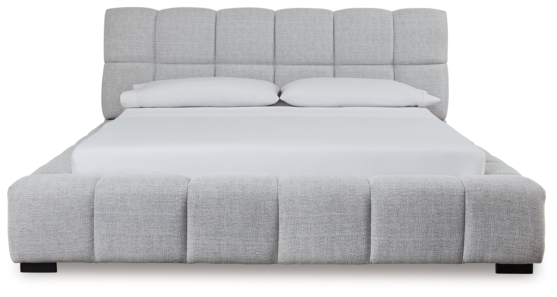 A divine merger of casual and contemporary design, this king upholstered bed is the upgrade you've been dreaming of. Plush, deep pillowed tufting creates an impressive silhouette that's just as comfortable as it is stylish. And the textured light gray Next-Gen Nuvella™ performance fabric is soft and easy to clean. Now there's a bed with staying power.