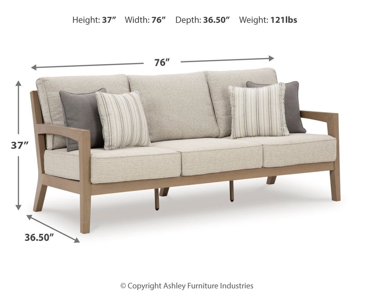 This sofa is a beautiful addition to any outdoor living space. Effortless in its simplicity, this piece echoes your easygoing sensibilities. Combining durable, cutting-edge engineered materials, its Weatherwood construction enhances the contemporary design. Rest assured, the thick cushions and accent pillows are wrapped in high-performance fabric that’s fade-resistant, stain-resistant and a breeze to clean. Pair with the matching loveseat and swivel lounge chair for a spectacular seating arrangement.
