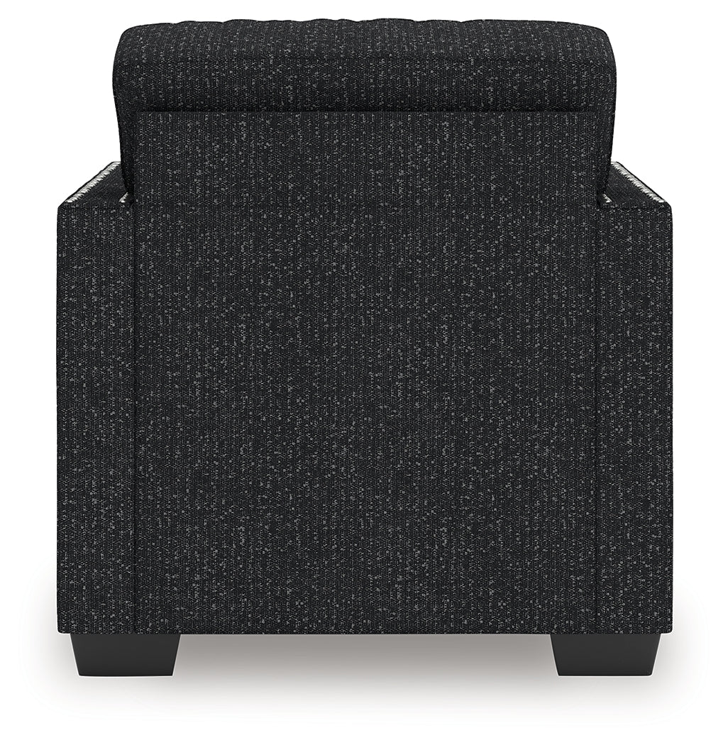- Attached back and loose seat cushions