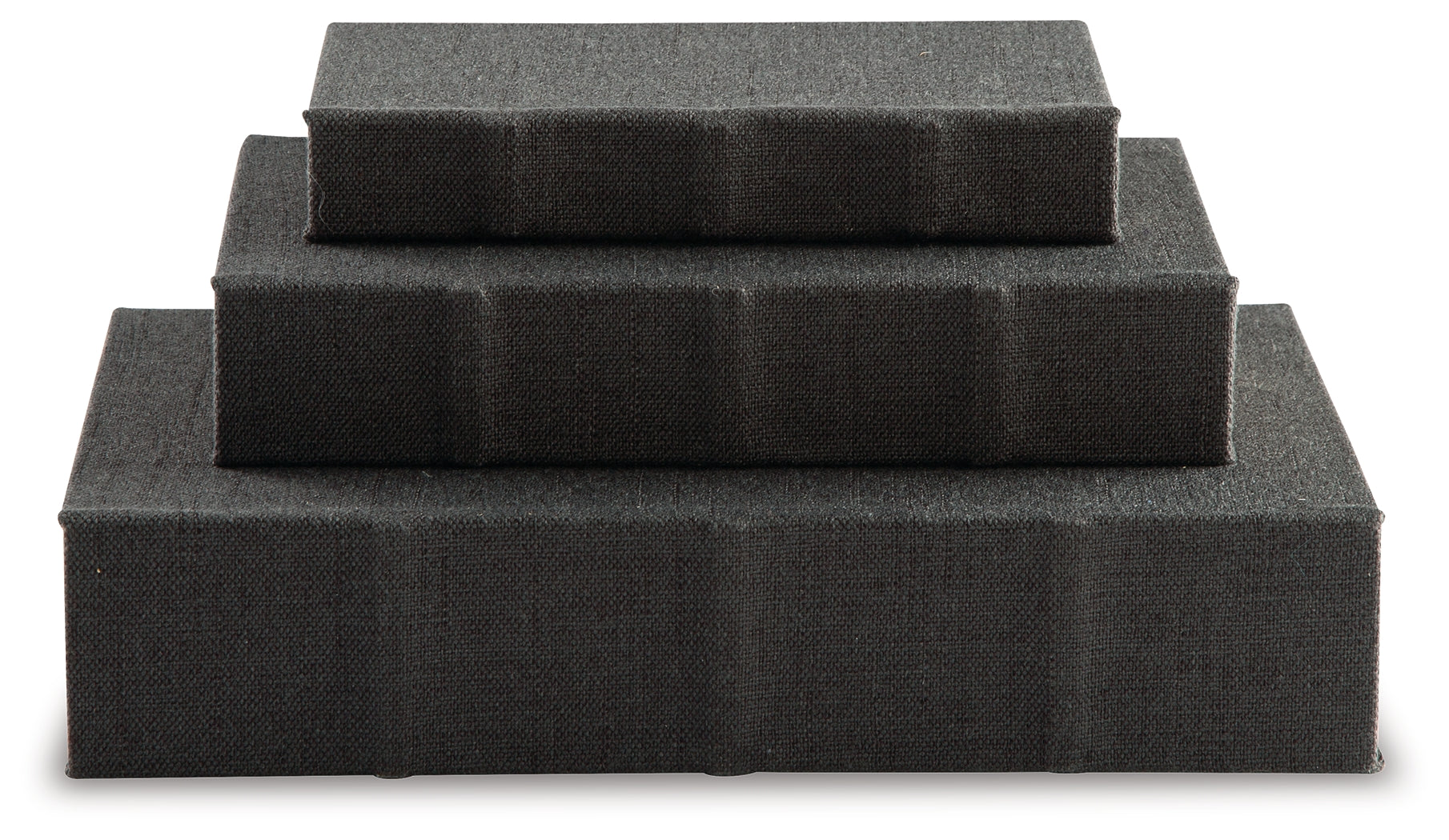 This set of three keepsake boxes makes storage so quietly understated. The black cover is complemented inside with a black velvet lining. The perfect place for your dearest keepsakes, this set adds a touch of casual elegance to your decor.