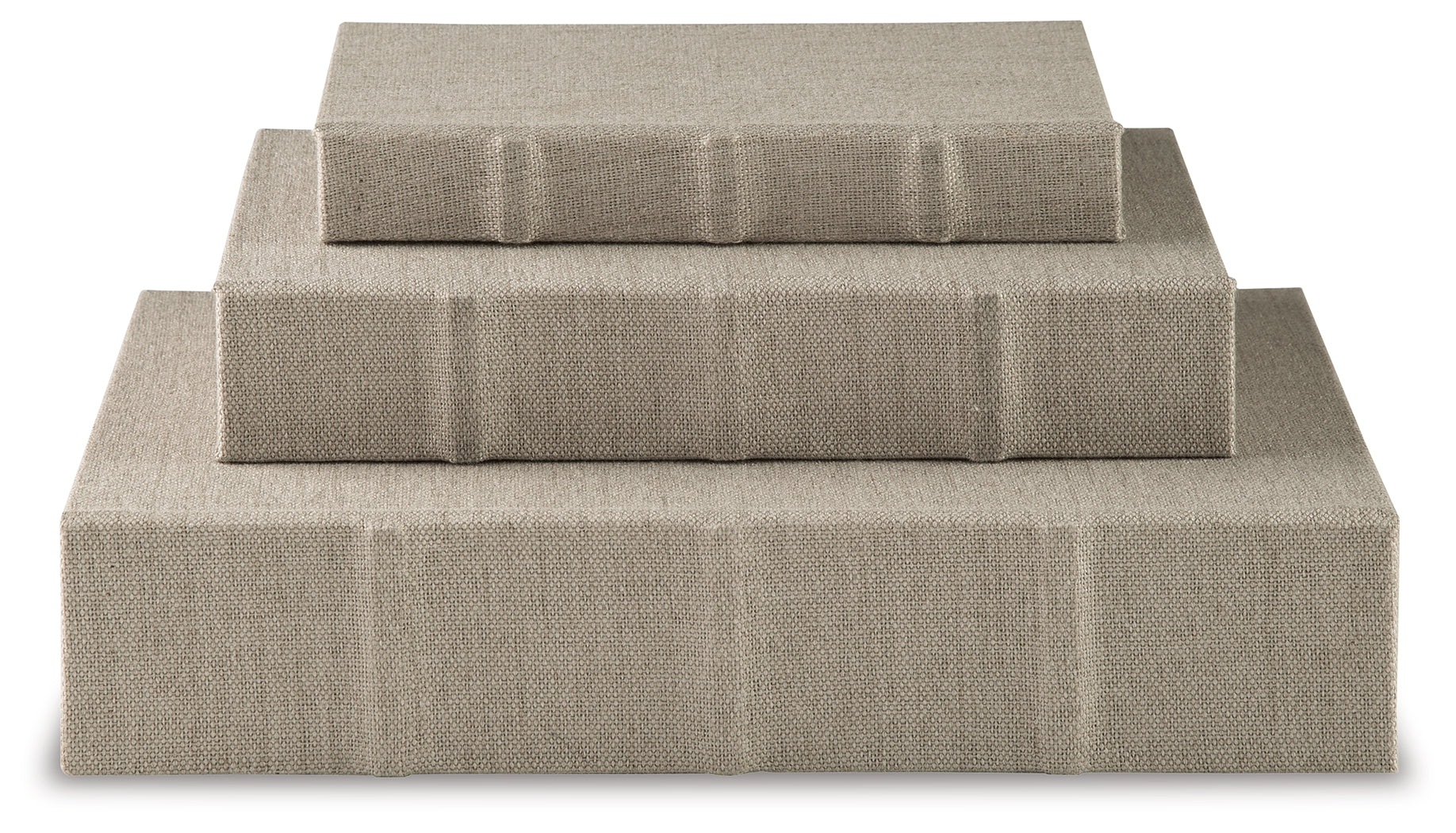 This set of three keepsake boxes makes storage so quietly understated. The beige linen cover is complemented inside with a black velvet lining. The perfect place for your dearest keepsakes, this set adds a touch of casual elegance to your decor.