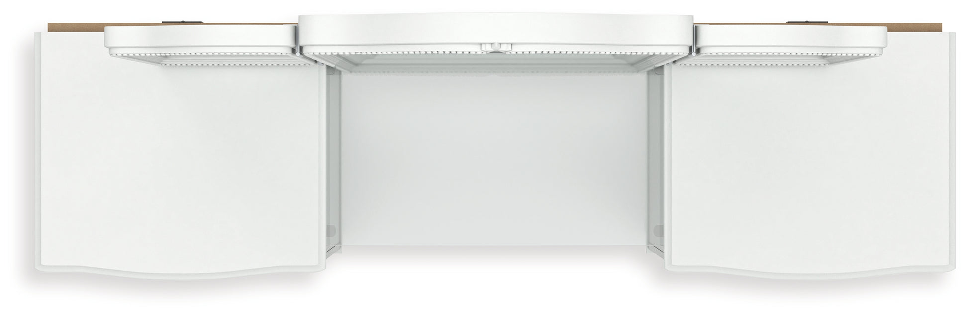 Fit for a princess. This vanity with mirror’s crisp matte white finish pairs with charming ornate beading details—perfect for your girly girl. The mirror's ambient lighting adds a touch of romance, while the bun feet and crystal knobs on the cabinet are the crowning touches to make your little one feel like royalty.