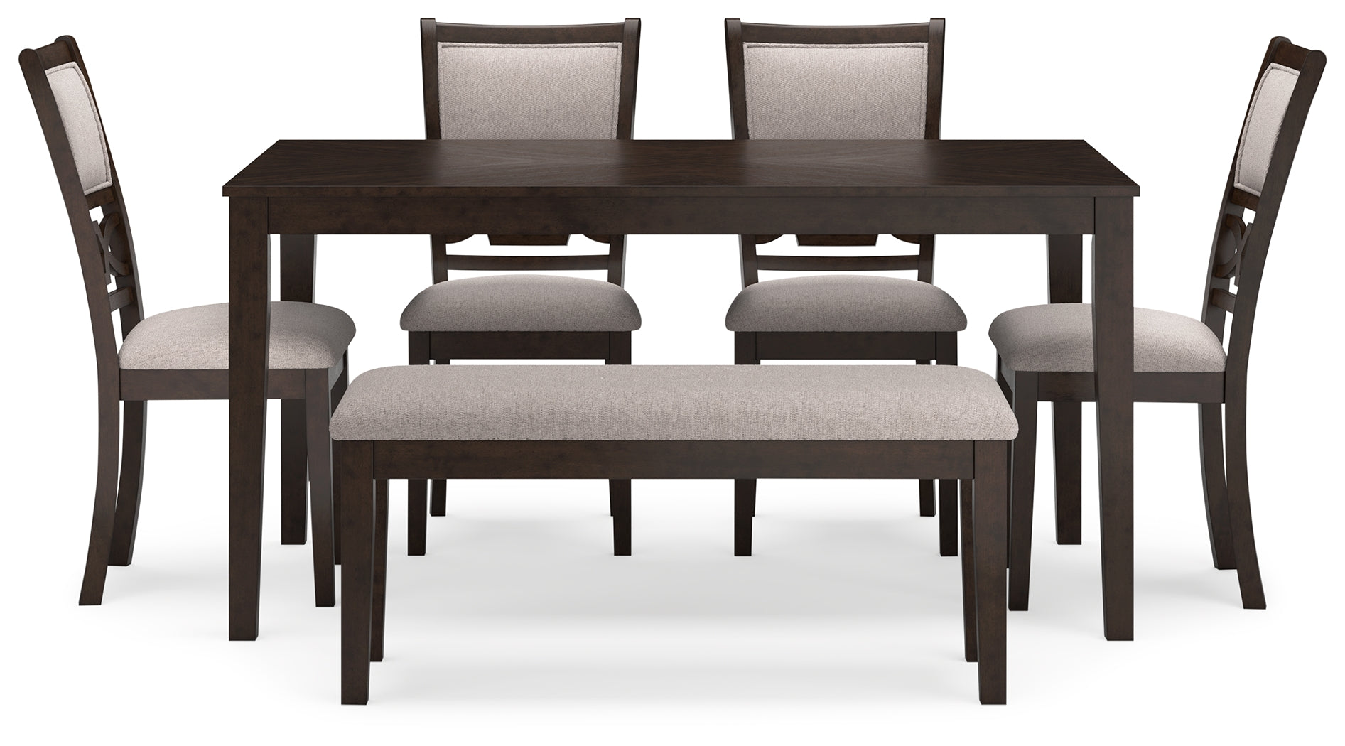 - Table made with rubberwood solids, mindi veneer and MDF substrates