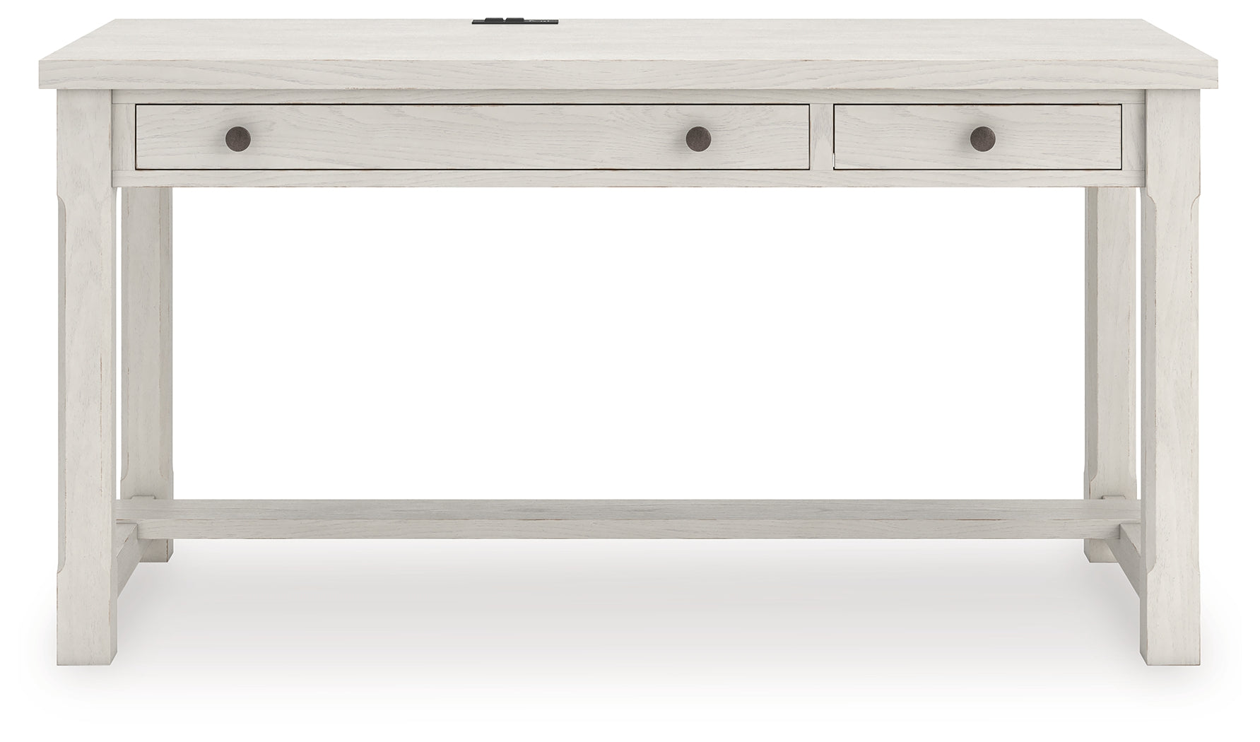 This home office desk is sure to impress when it’s time to study or work from home. With its antiqued white finish and wood grain texture, modern farmhouse-style workstations have never been so fashionable. A wide keyboard drawer and convenient USB charging bring function galore to your at-home office. Use this piece as a stand-alone work area, or pair it with the matching desk return (sold separately) to expand your workspace. All that’s missing is you.