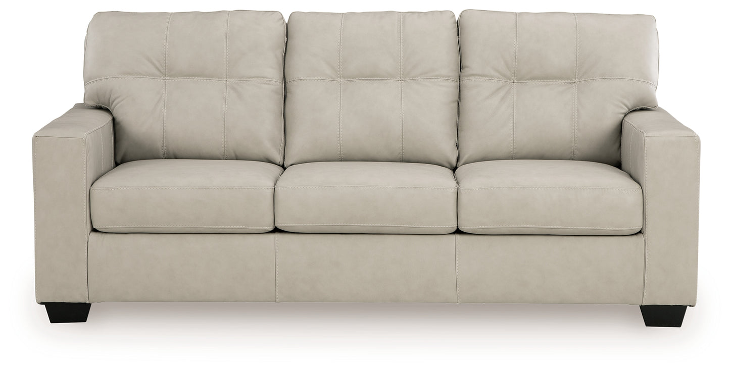 Whether your inspiration is contemporary or classic, the Santorine queen sofa sleeper's good looks and affordable luxury are hard to deny. Its clean-lined silhouette and skillfully matched leather and faux leather upholstery offer a transitional sensibility. With ample cushions and tufted details, this sofa invites you to relax in comfort. Plus a pull-out queen mattress, made with quality memory foam, comfortably accommodates overnight guests.