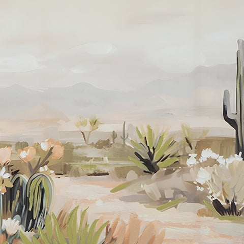 Bring the beauty of the desert into your home. This captivatingly calm wall art showcases a serene landscape, complete with iconic cacti and delicate blooms. Crafted with meticulous detail, the hand embellished canvas is a perfect choice for those seeking a touch of southwestern charm.