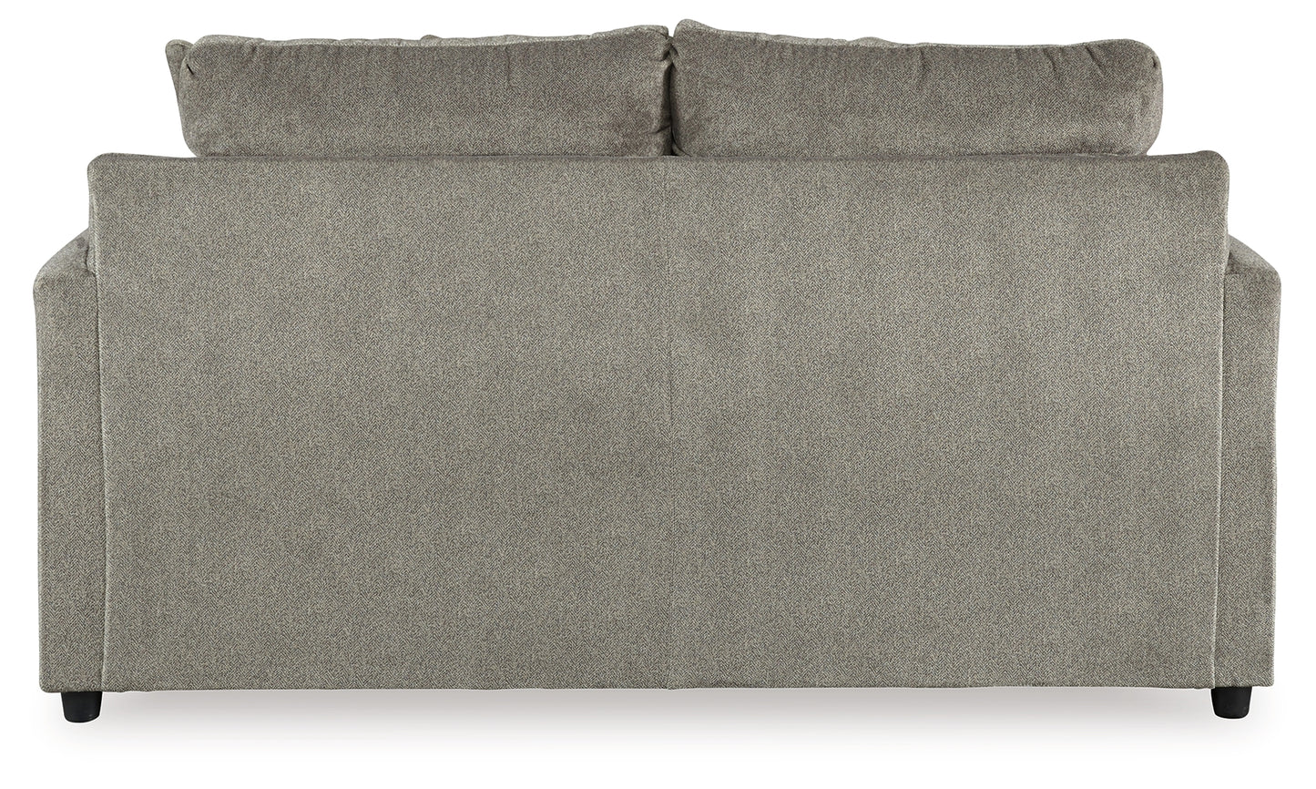Flaunting a trendsetting silhouette, this sofa puts the contemporary in your contemporary home. Its “three over two” profile eliminates the center seat cushion, giving you elongated plushness and deep seating. And the chunky chenille fabric satisfies your need for a piece that feels as good as it looks. Soft jacquard chenille throw pillows add a splash of geometric pattern and color contrast.