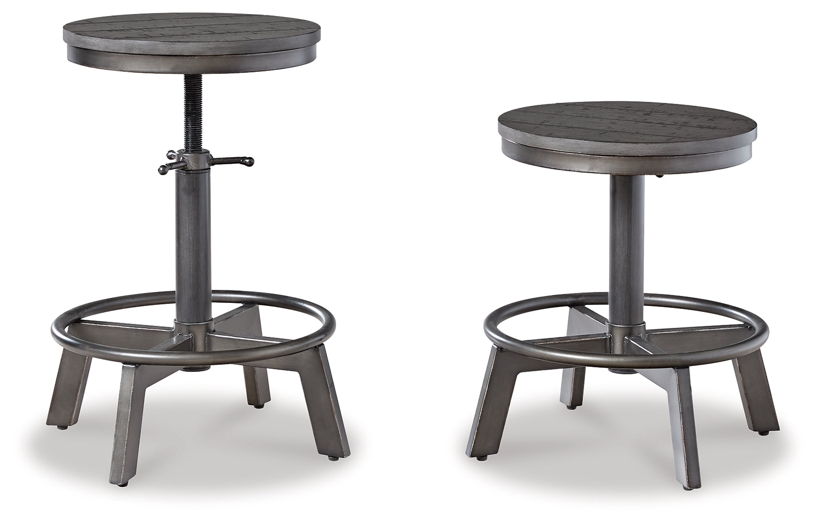 Make your home the hub for cool vibes with this stool. Two-tone finish scheme of distressed warm brown and aged gunmetal is full of urban industrial swagger. Adjustable height is accommodating for you and your guests. Add it behind your sofa with a long counter table for a dapper eating or working space.