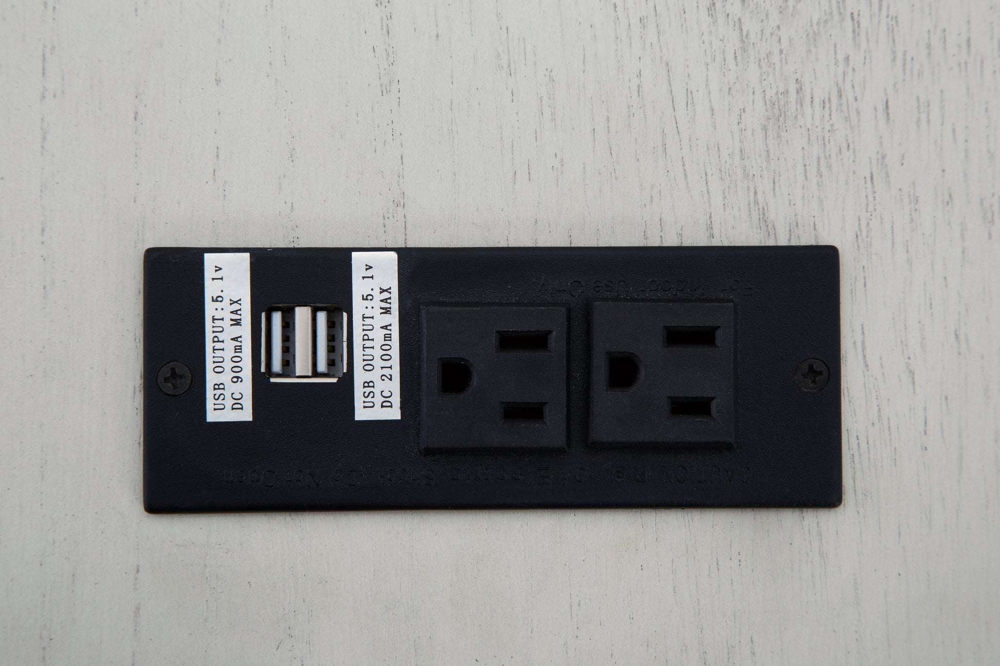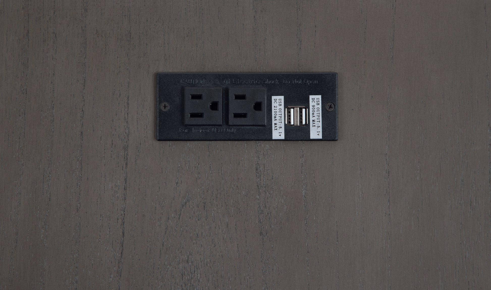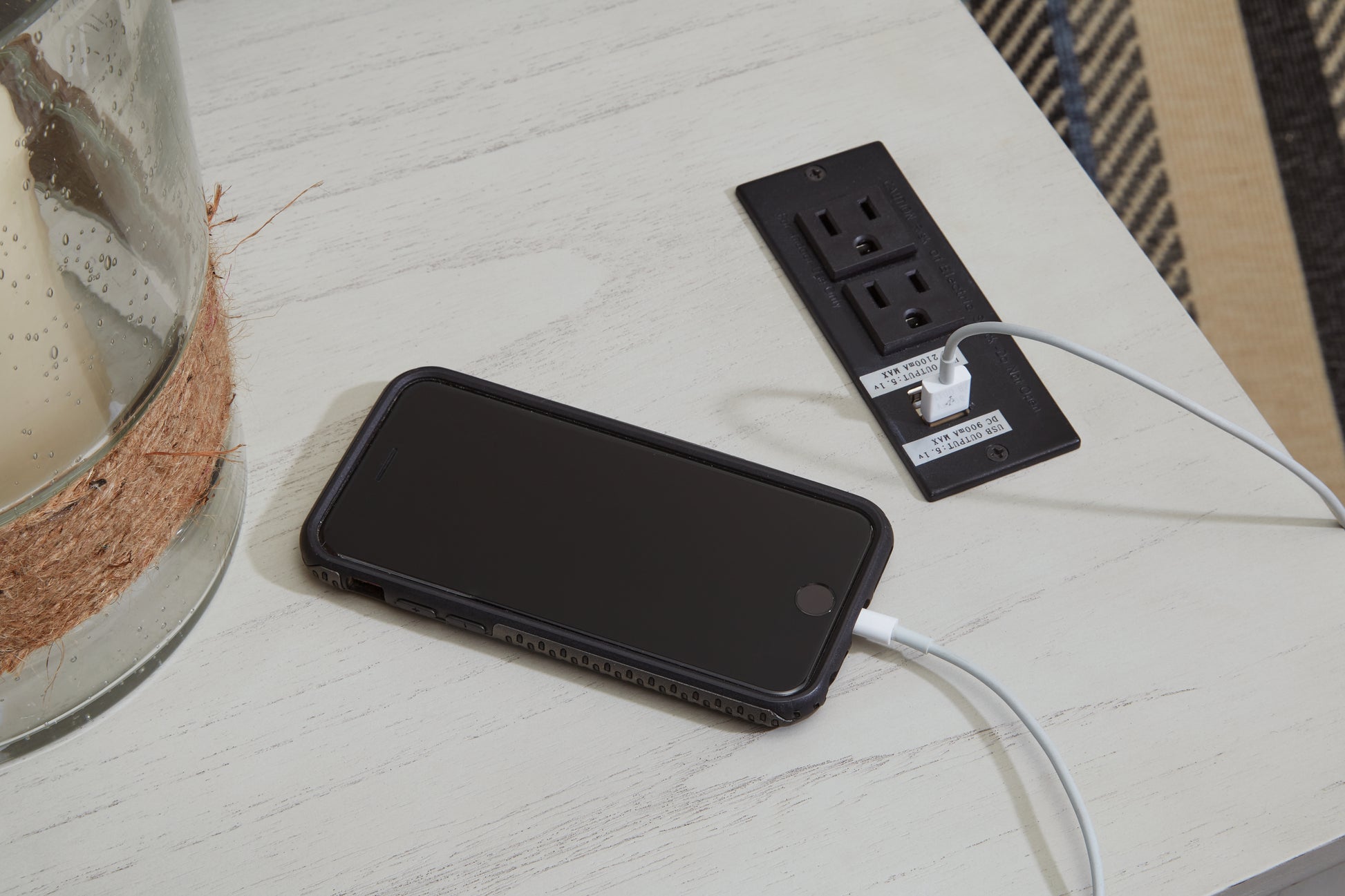 Add big character to a small space with this chairside end table. With its compact size and strong silhouette, it can go anywhere and blend easily into the decor. Less is so much more with the Shaker-inspired design and black wood tone finish. Loaded with form and function, this end table displays accent pieces and stores essentials securely while keeping devices powered up.