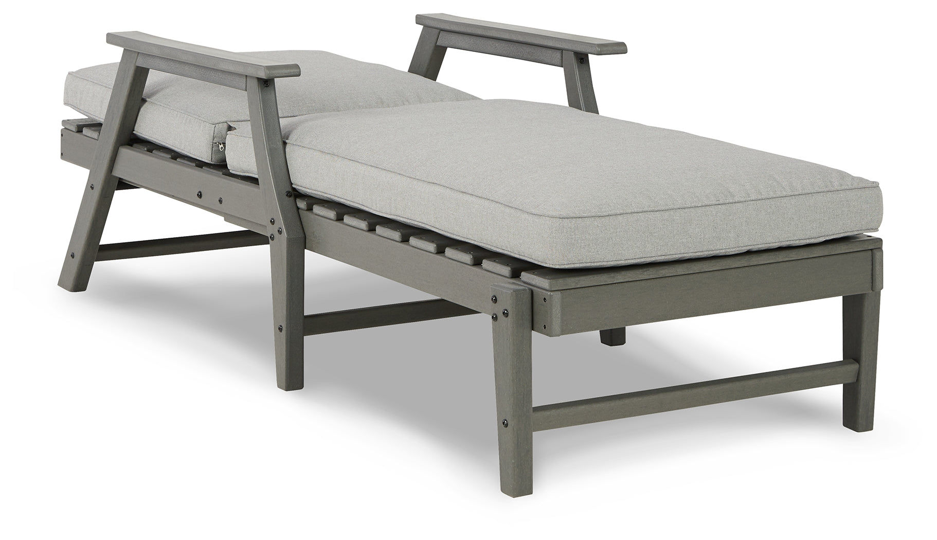 It’s the dawn of a new day for gray. Embrace the style trend with this outdoor chaise lounge chair. Crafted of MEGA-TUFF® HDPE material, it combines the exceptional durability and weather resistance you need with the “wood look” you love. This comfortably cushioned chaise with an adjustable lay-flat backrest takes outdoor living to a whole new level. Rest assured, the thick seat and back cushions are wrapped in our exclusive Nuvella® high-performance fabric that’s fade-resistant, stain-resistant and a breeze to clean.