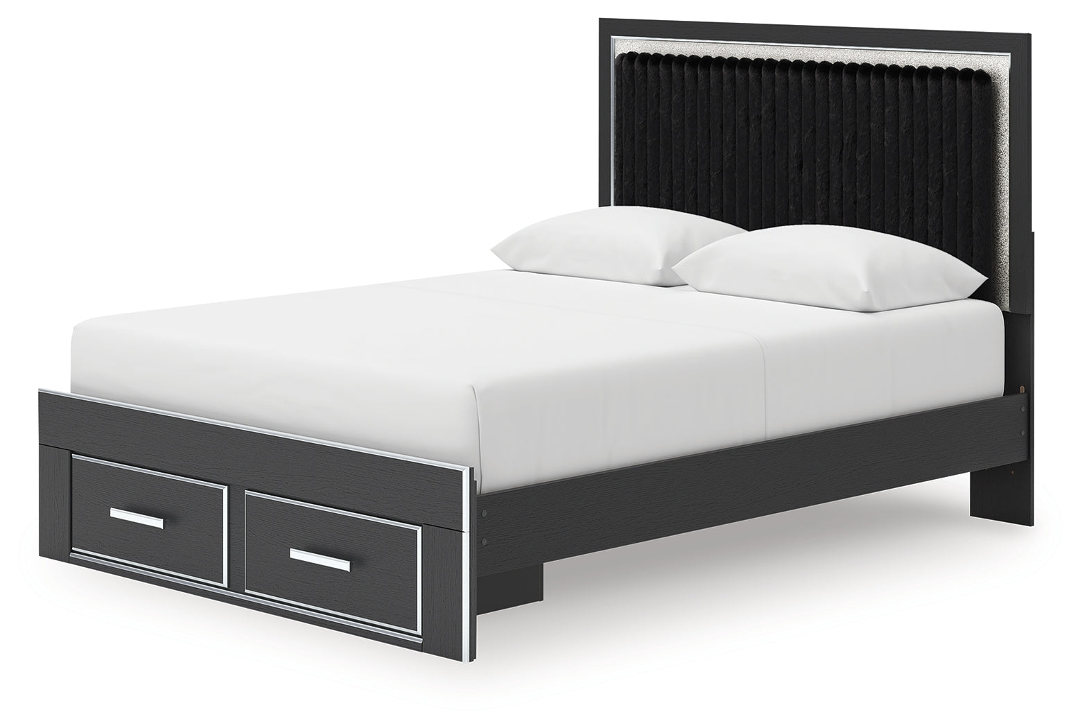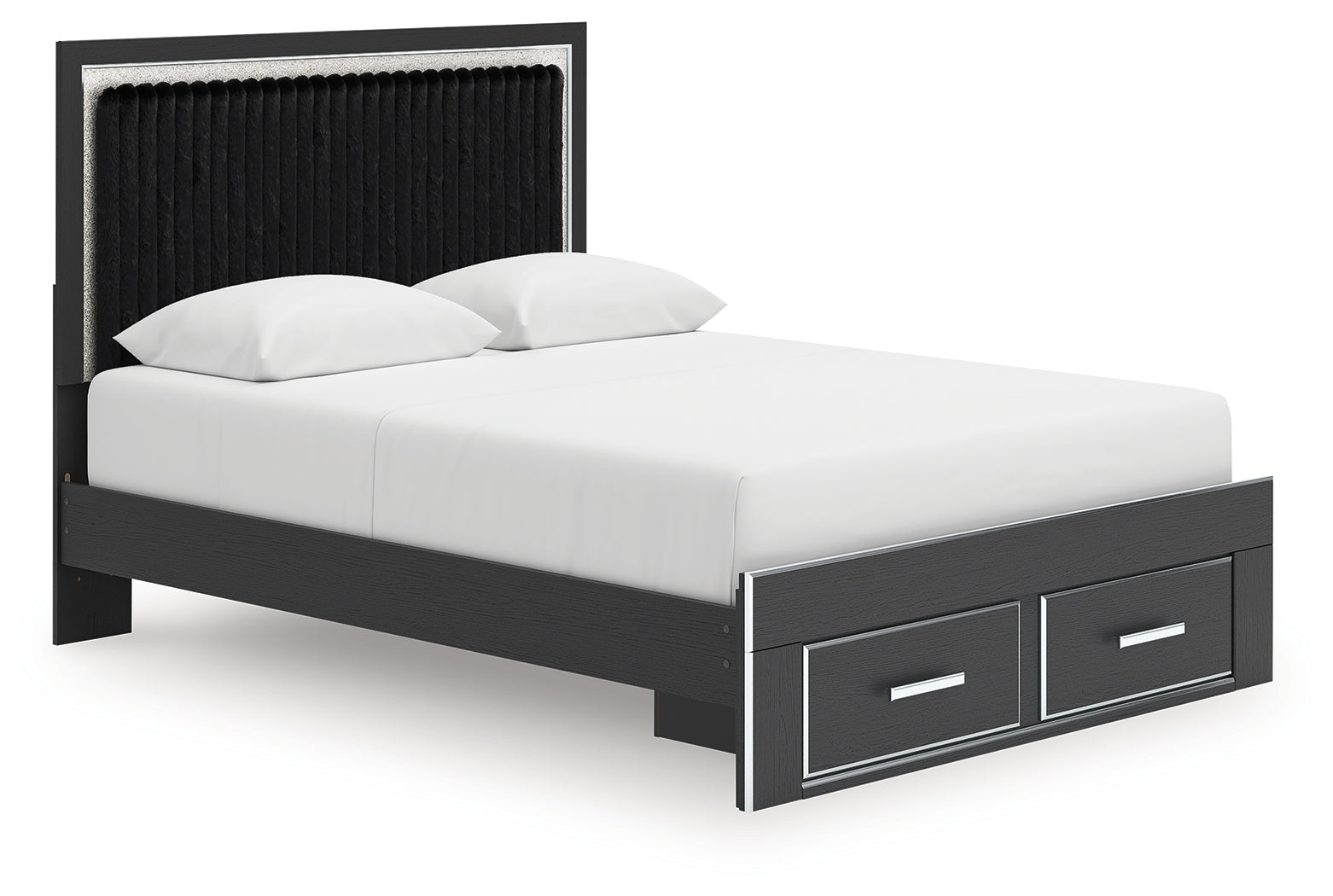 If glitz and glam are your jam, you’re gonna love this queen upholstered panel storage bed. Gleaming glitter and dazzling chrome-tone touches are paired with tufted black faux fur for a stunning pop of pizzazz. And the spacious storage drawers, with large-scale handles and faceted details, don’t disappoint. Loaded with chic flair and serious sparkle, it's a simply splendid way to wake up your inner sanctum’s style.
